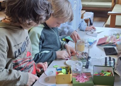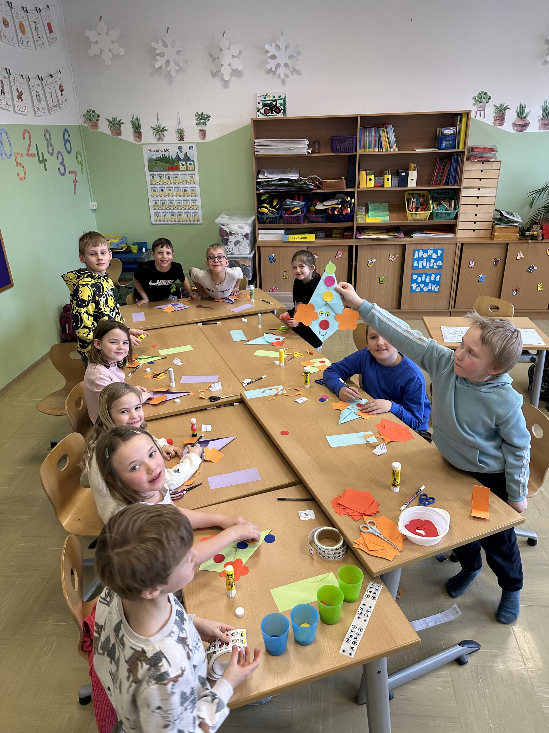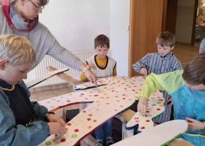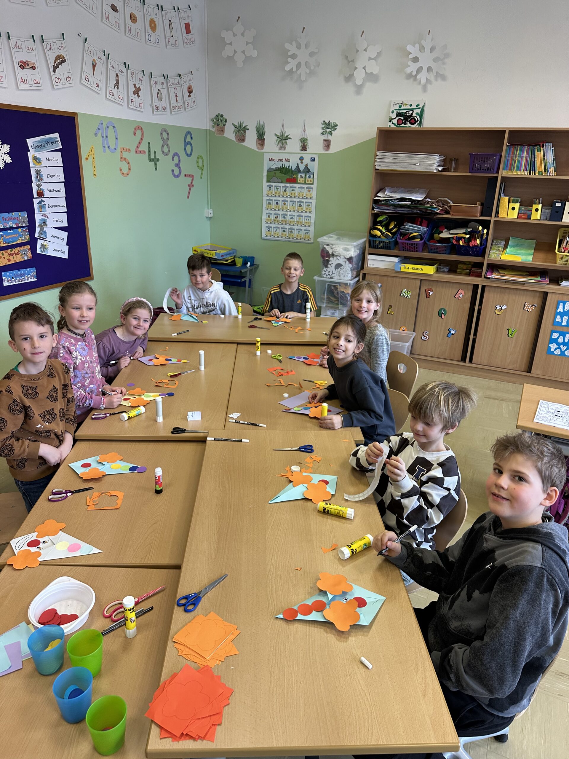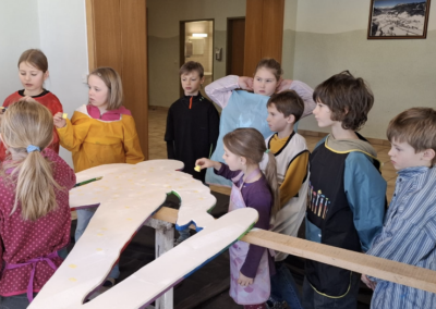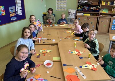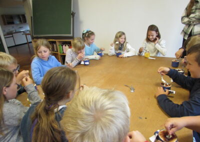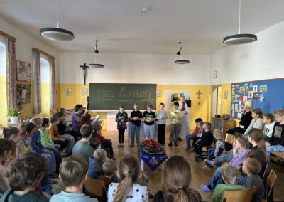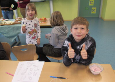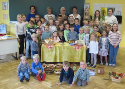 Am 21. März fand unser Osterprojekttag statt, zu dem wir die Kinder des Kindergartens einluden. Zur Berüßung wurde ein Osterlied zusammen gesungen. Anschließend teilten sich die Kinder in Gruppen auf und bastelten, sangen oder es wurde gelesen. Abschließend führten die Kinder der 1. und 2. Schulstufe noch ein Osterlied vor. Es war ein schönes Beisammensein und ein toller Vormittag für alle!