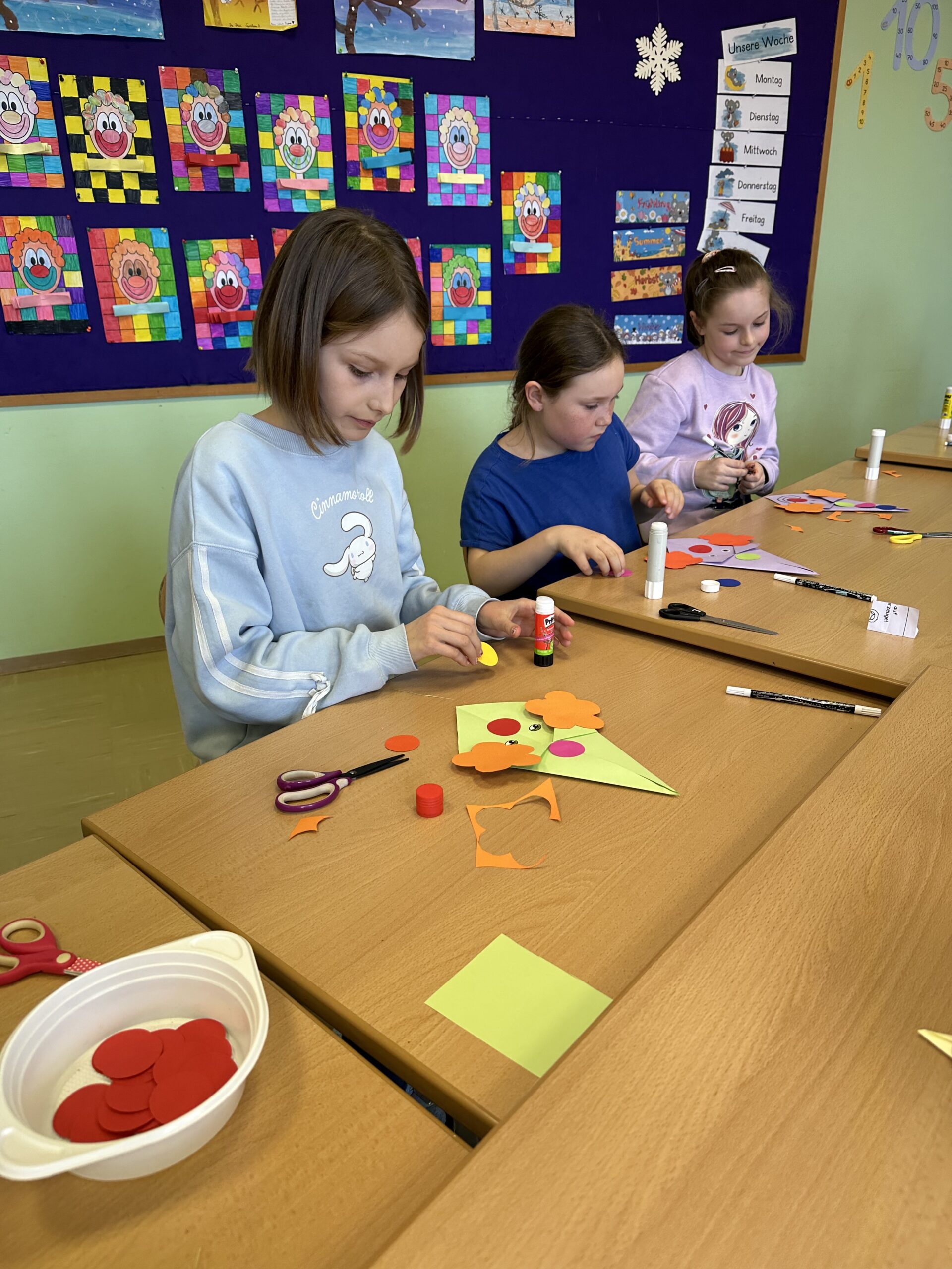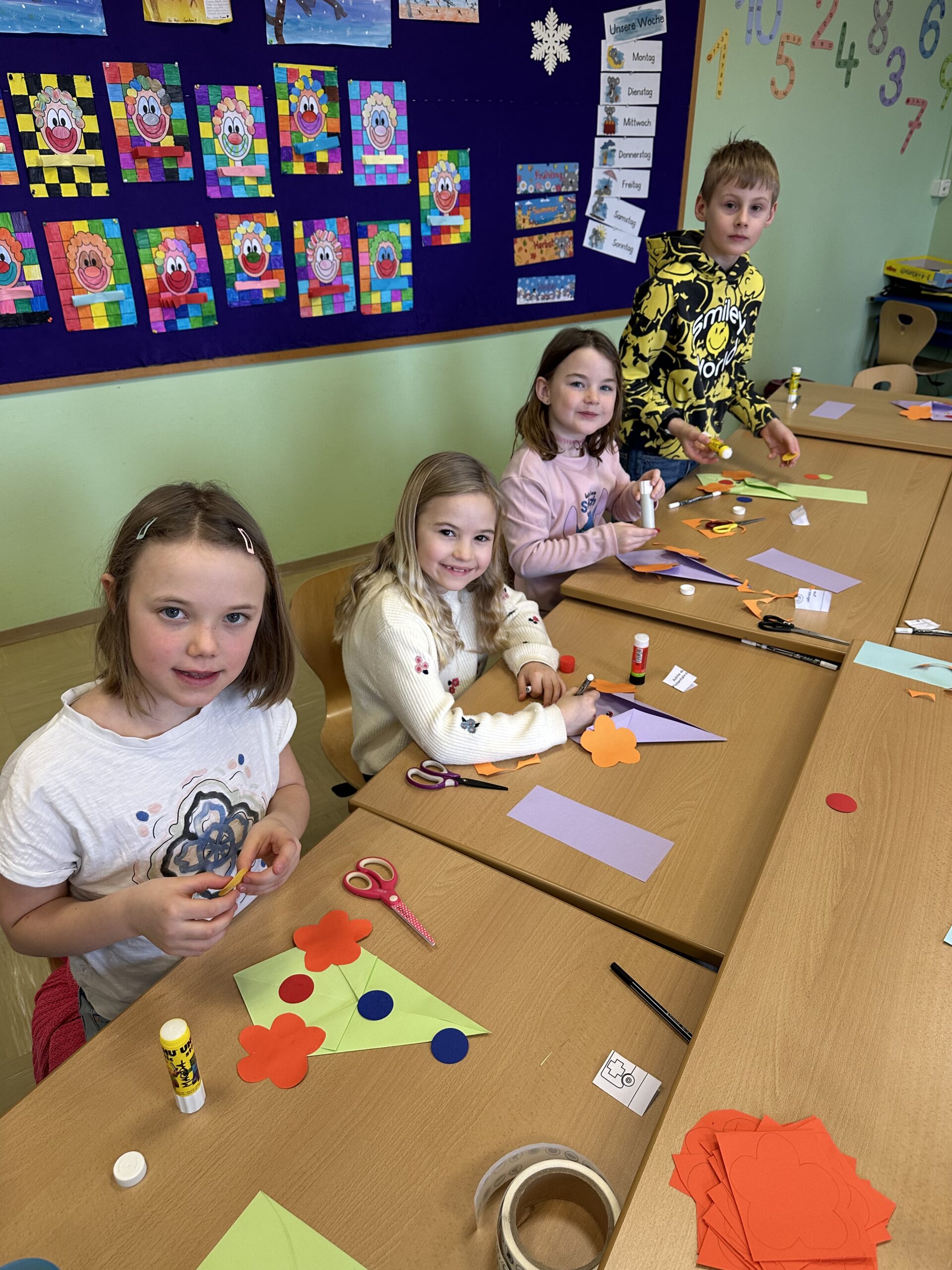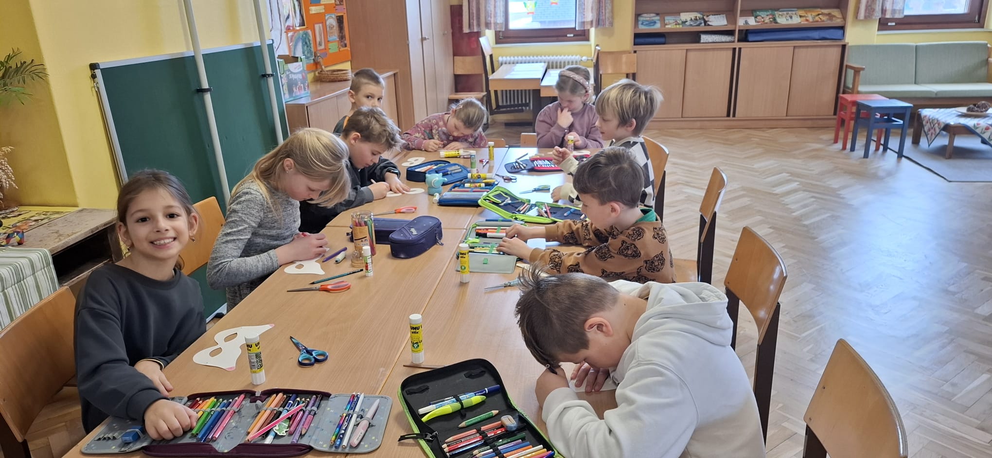 Am 21. März fand unser Osterprojekttag statt, zu dem wir die Kinder des Kindergartens einluden. Zur Berüßung wurde ein Osterlied zusammen gesungen. Anschließend teilten sich die Kinder in Gruppen auf und bastelten, sangen oder es wurde gelesen. Abschließend führten die Kinder der 1. und 2. Schulstufe noch ein Osterlied vor. Es war ein schönes Beisammensein und ein toller Vormittag für alle!