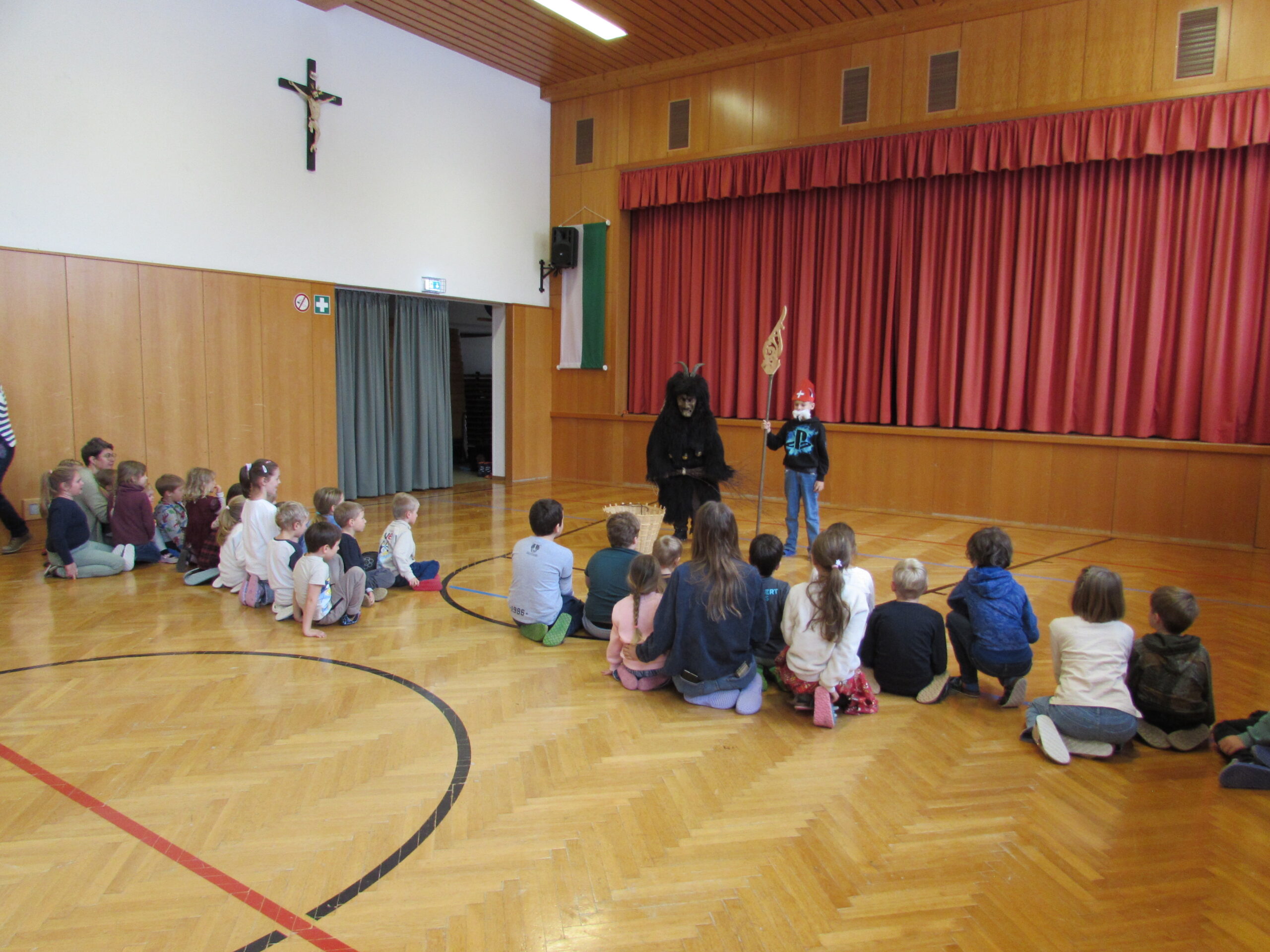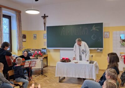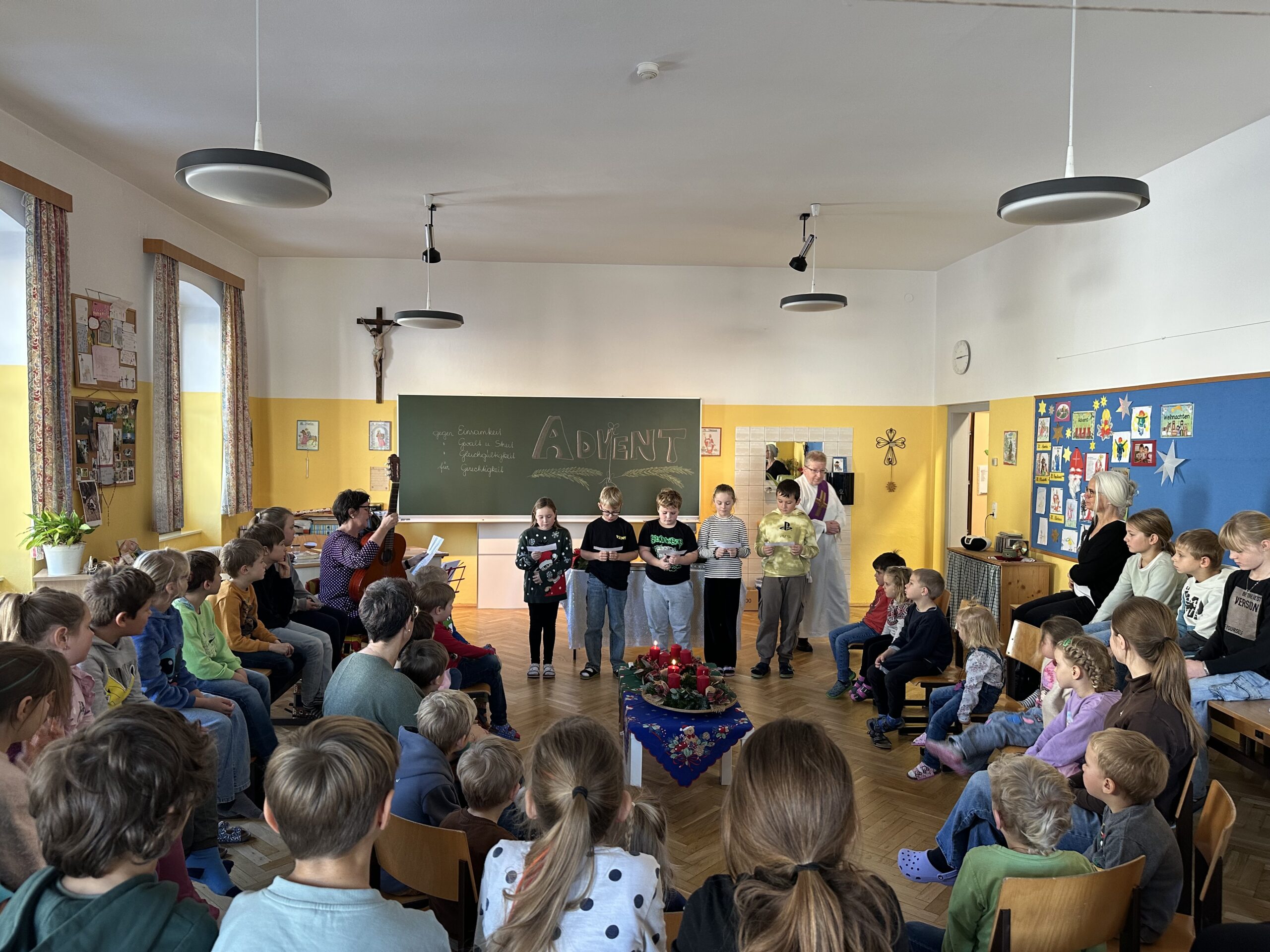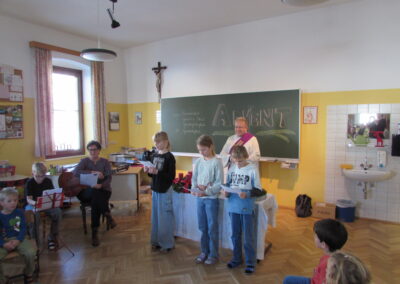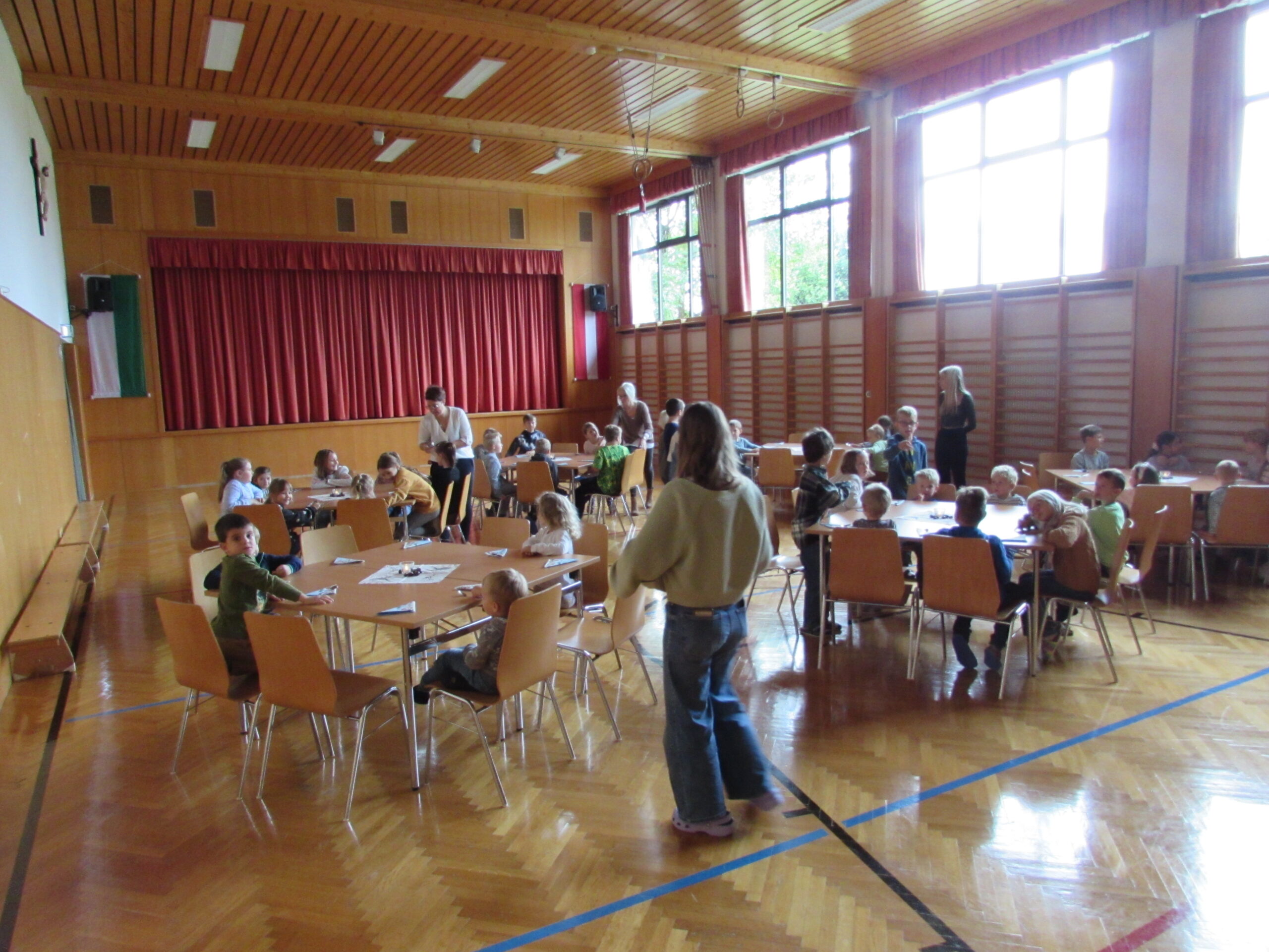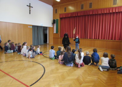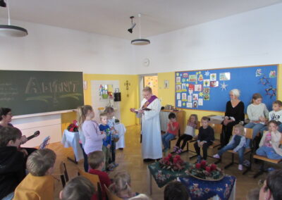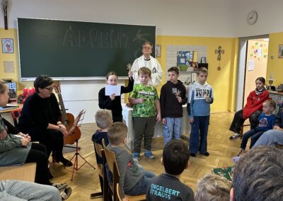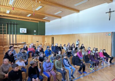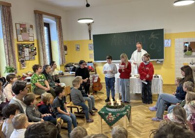 Danach feierten wir unseren Schulgottesdienst im Turnsaal mit unserer neuen Religionslehrerin Frau Martina Kneis.