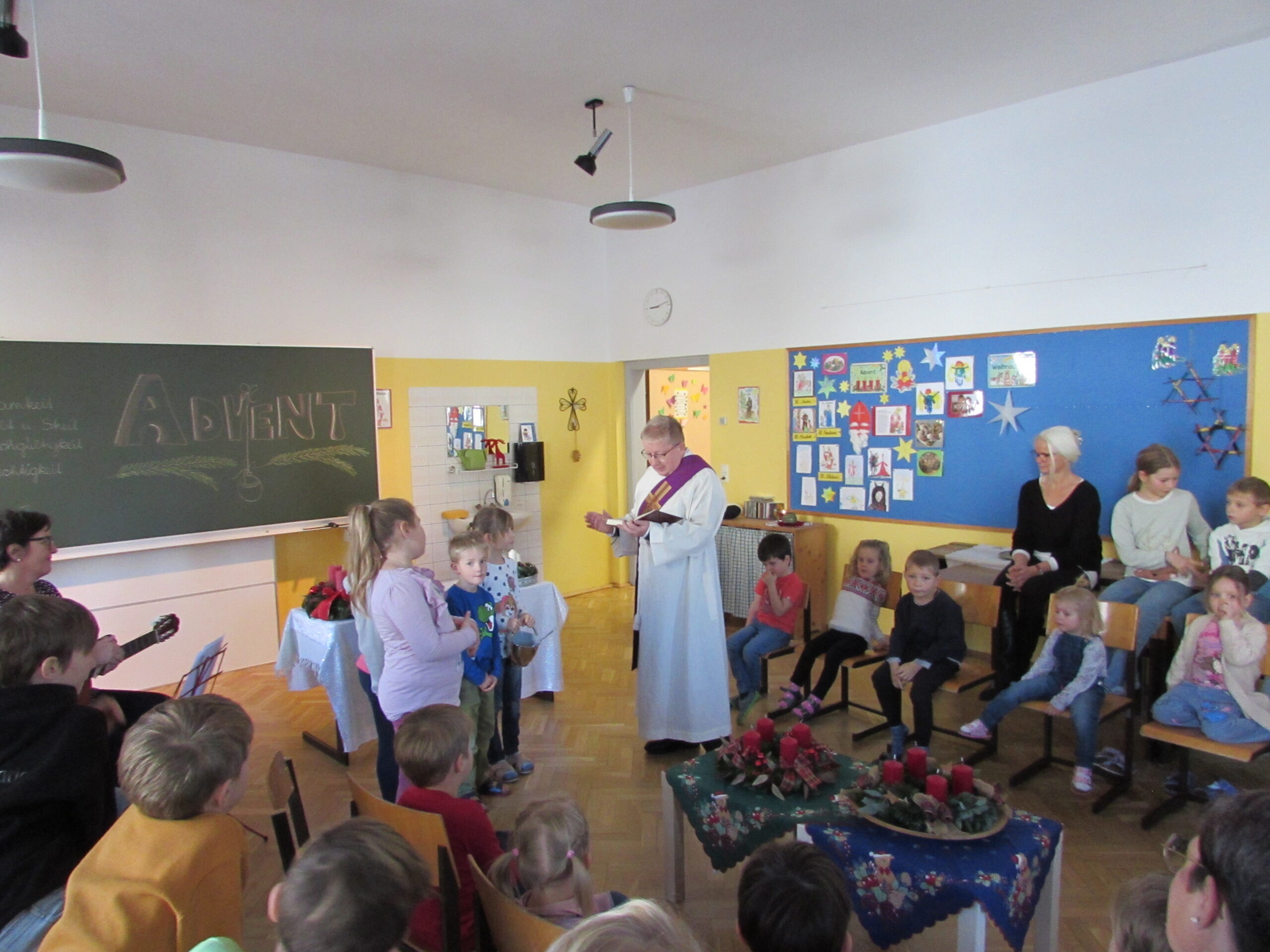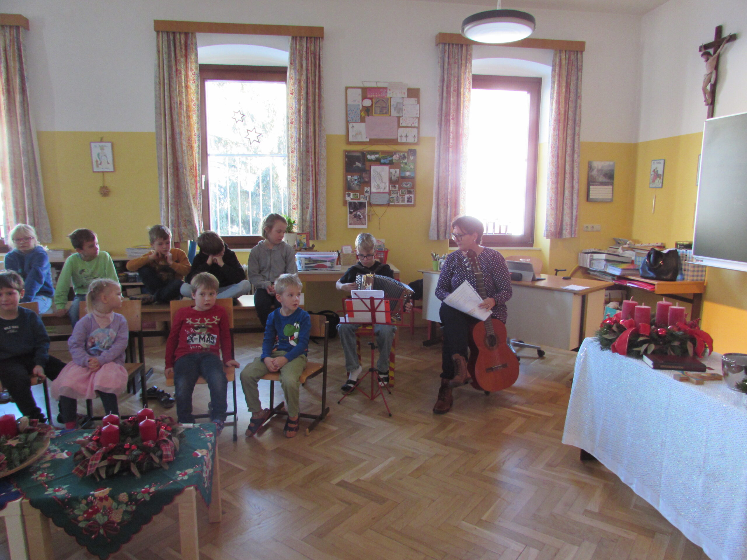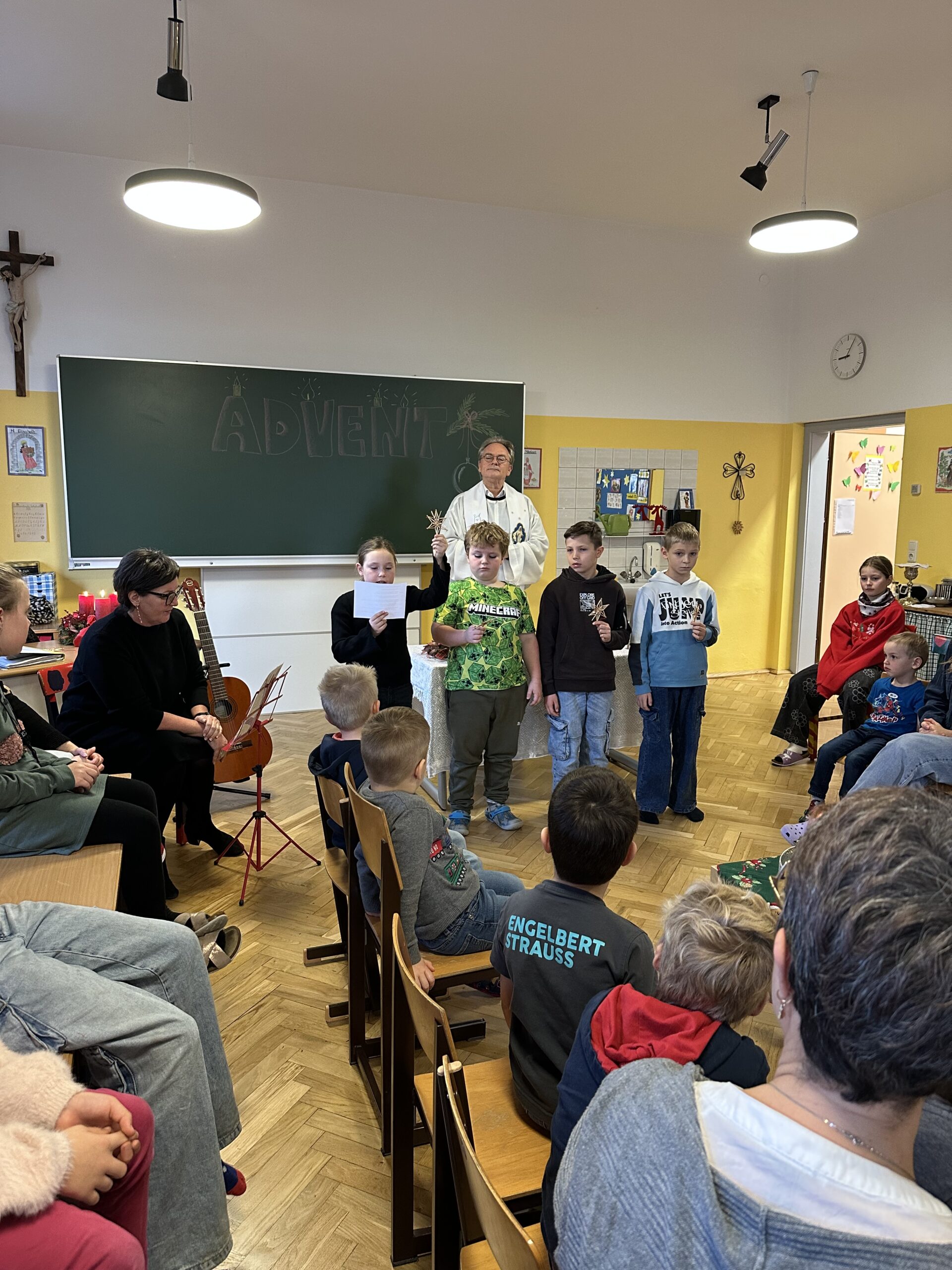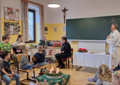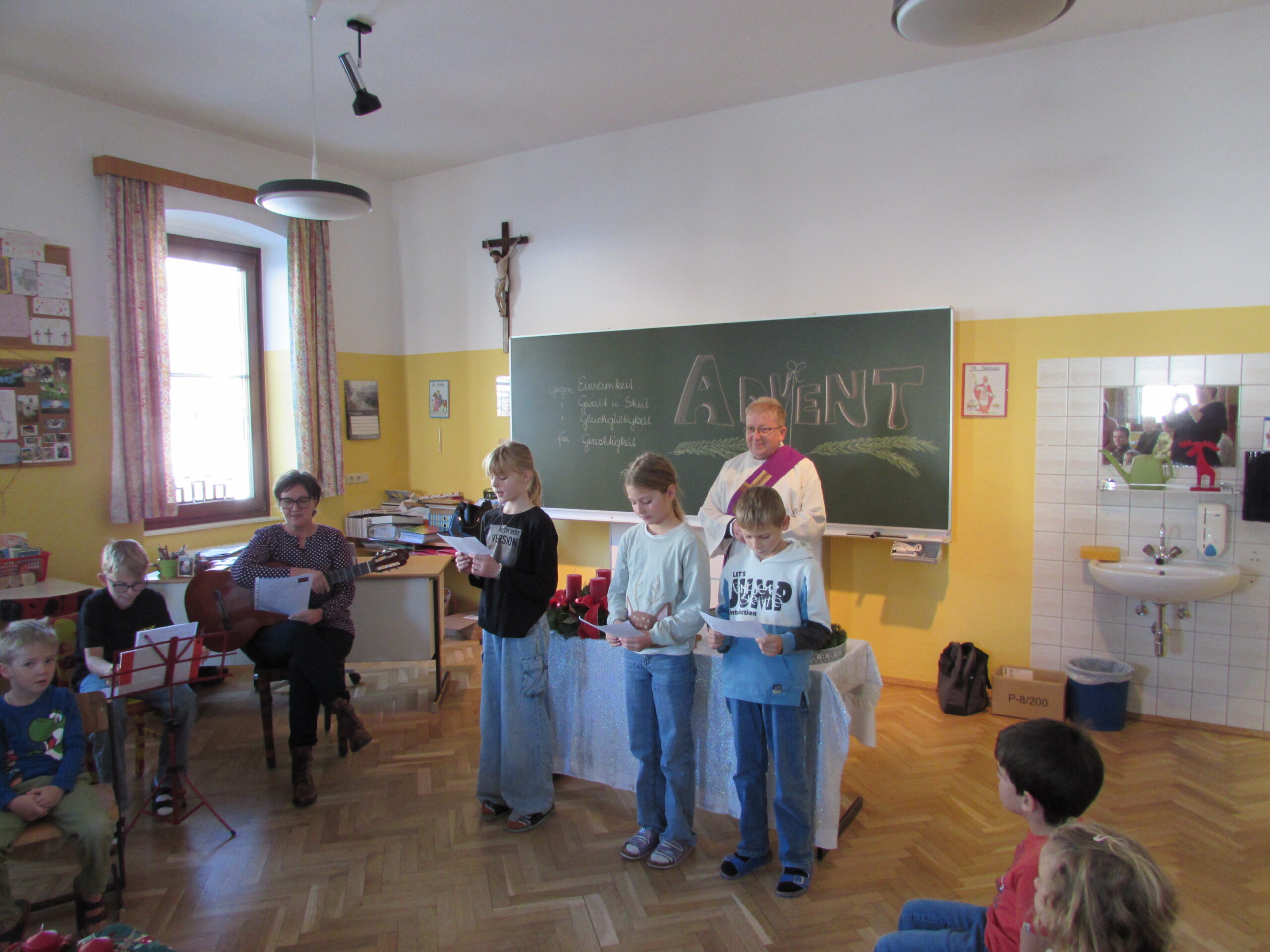 Danach feierten wir unseren Schulgottesdienst im Turnsaal mit unserer neuen Religionslehrerin Frau Martina Kneis.
