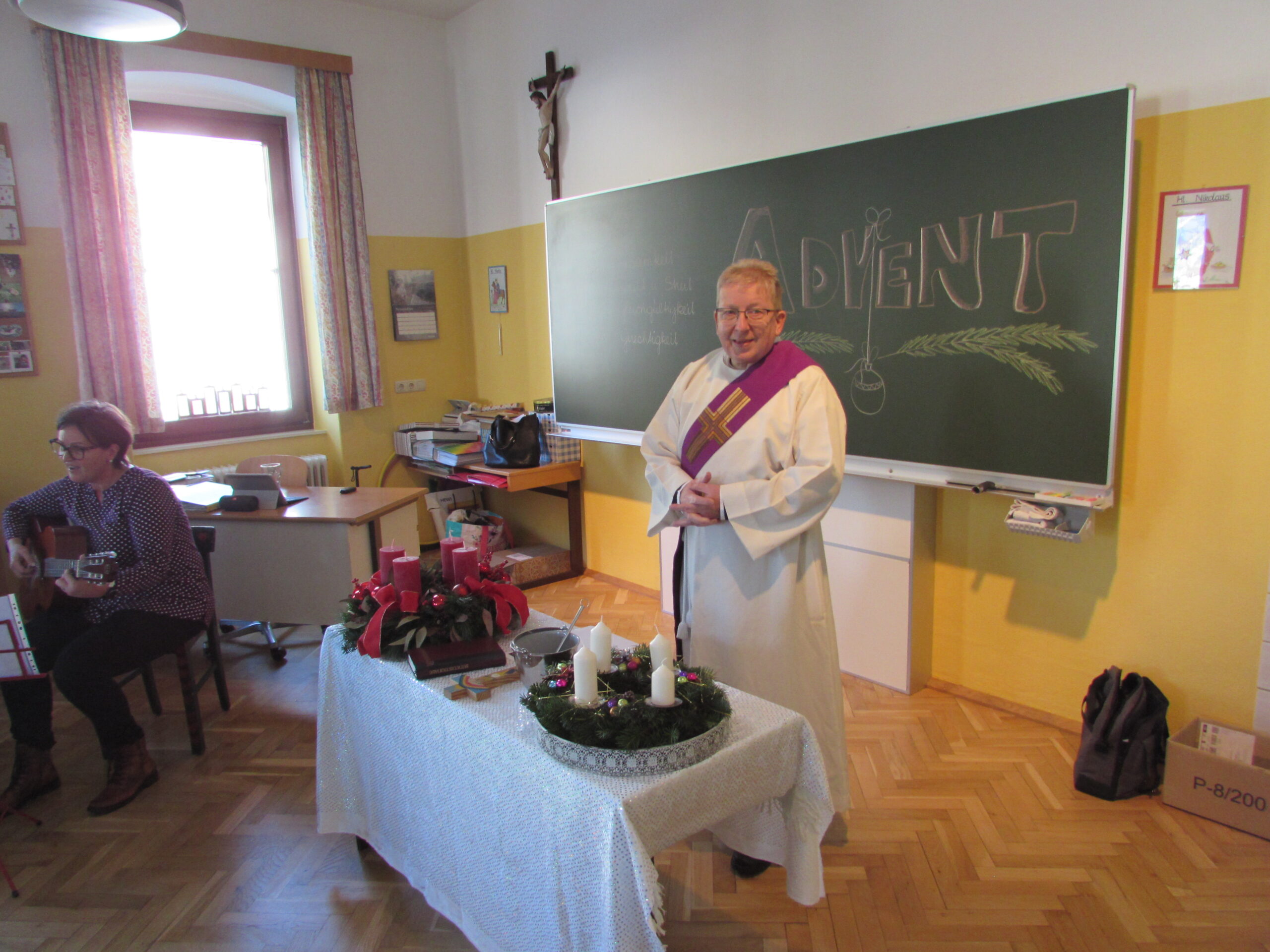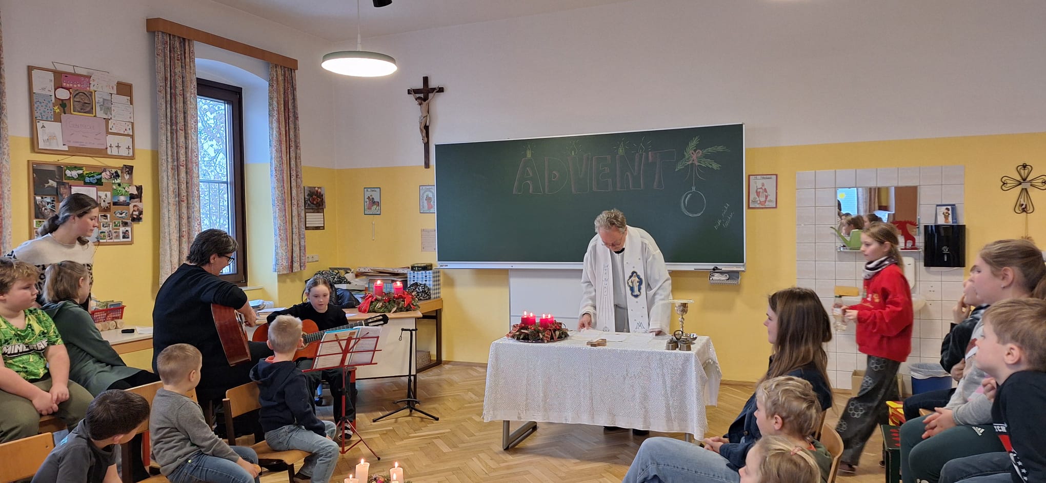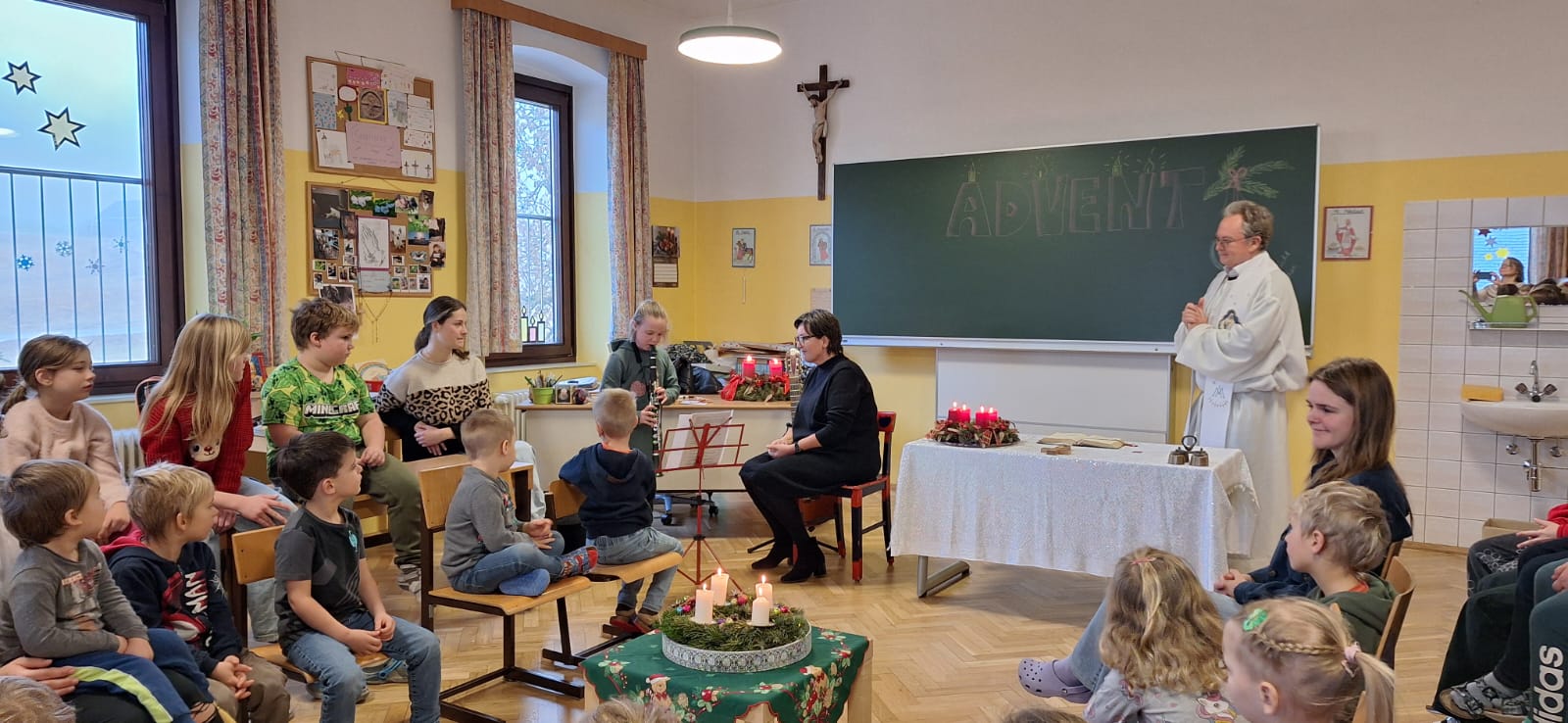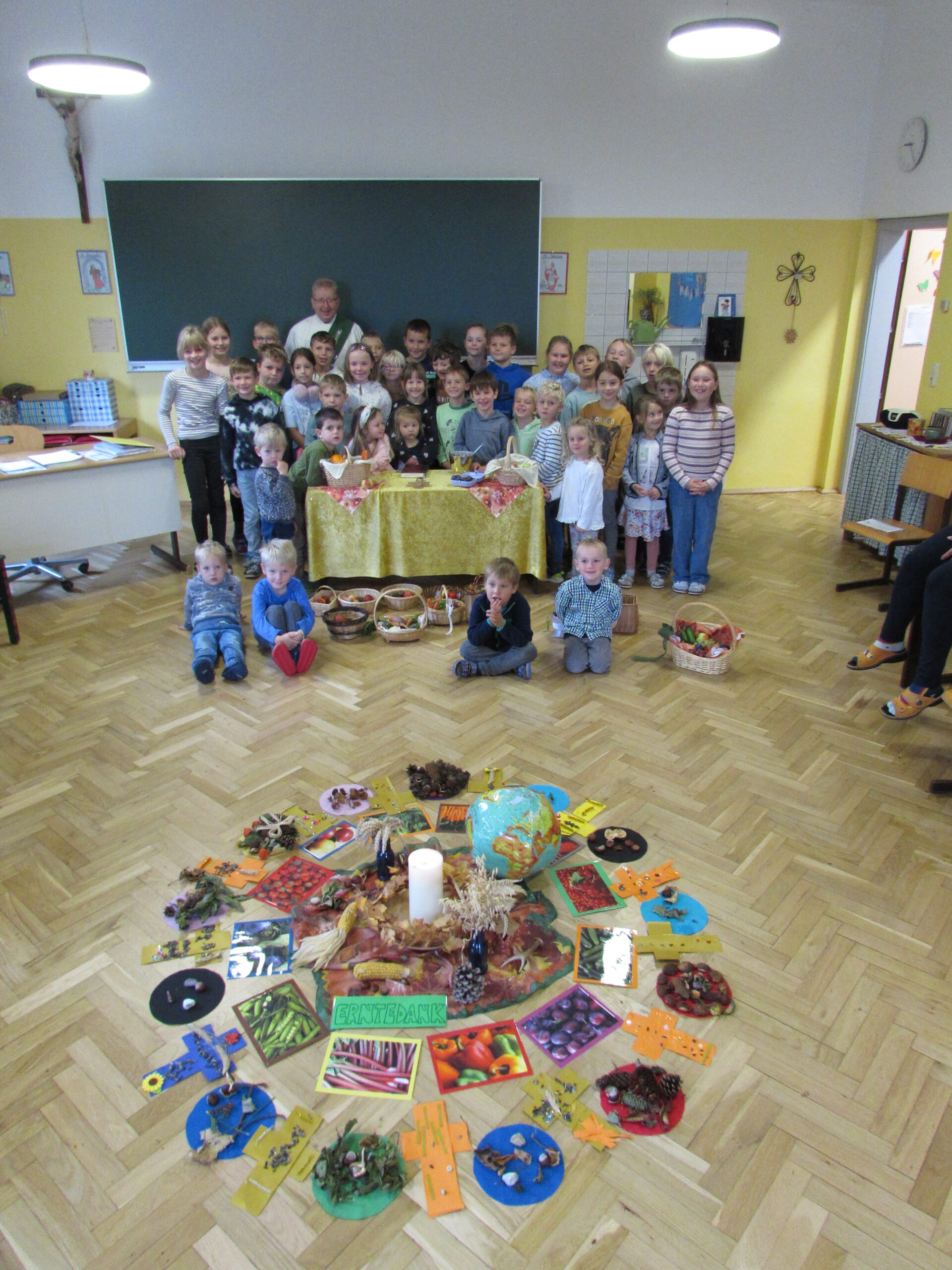 Danach feierten wir unseren Schulgottesdienst im Turnsaal mit unserer neuen Religionslehrerin Frau Martina Kneis.
