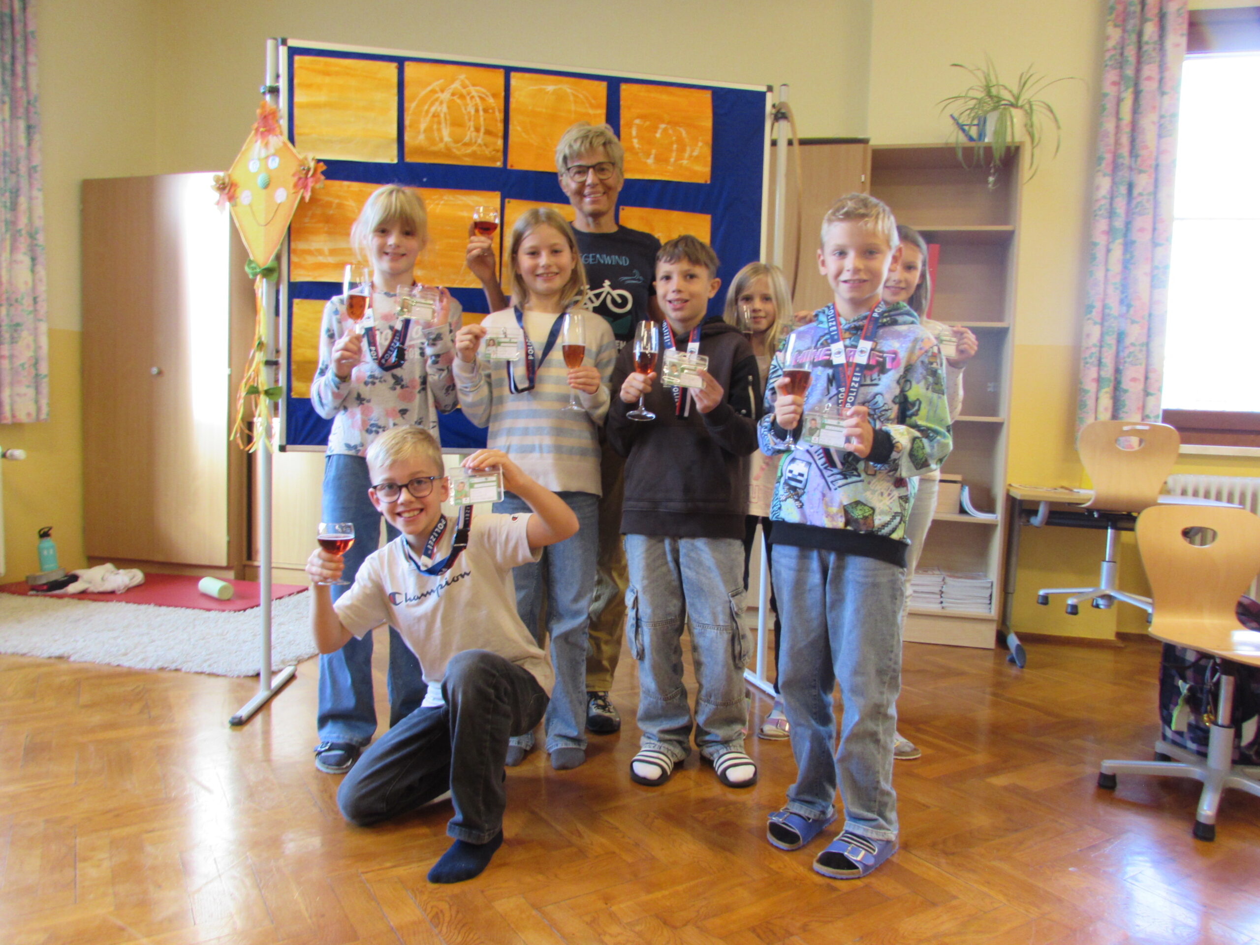 Die Schüler und Schülerinnen der 4. Schulstufe nehemen alle an der freiwilligen Radfahrprüfung teil. Den theoretischen Teil haben die Kinder bereits am Vortag alle bestanden und – wie zu erwarten – dürfen sich auch alle über die bestandene praktischen Prüfung am nächsten Tag freuen. Es gibt sogar einen Gutschein für einen Tageseintritt in die Grimmingtherme für jedes Kind. Vielen Dank!
