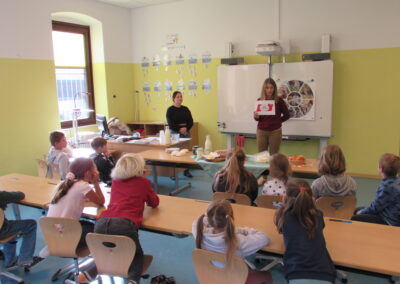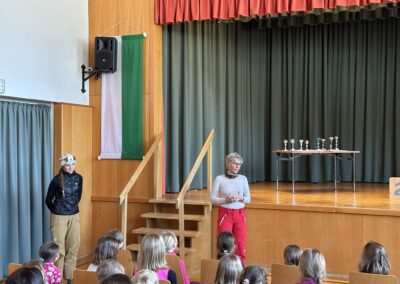 Am 25.10.2023 bekamen wir besonderen Besuch. Zum Start unseres Jahresprojekts rund um das Thema Müll, welches vom Abfallwirtschaftsverband Liezen durchgeführt wird, durften wir die Initiatorin des Projektes – Sonja Haider – begrüßen. Zur Einführung in das Thema erzählte Sonja von der Entstehung der Erde und der Entwicklung der Menschheit. Auf kindgerechte Weise führte sie die Schüler und Schülerinnen an die Notwendigkeit von Umweltschutz heran, wodurch sich die Kinder gleich fragten: „Was können wir tun, um unsere Erde zu schützen?“ Die einfachste Antwort darauf: Müll trennen! Dazu verriet Sonja uns das Geheimnis des AWV Liezen. Dort leben nämlich Oskar und Olivia, die den Kindern im Laufe des Schuljahres alles rund ums Müll trennen erzählen werden. Abschließend beendete Sonja die Einheit mit einem Lied und Tanz, um unsere Erde zu feiern. Ein gelungener Start für dieses wichtige Projekt!