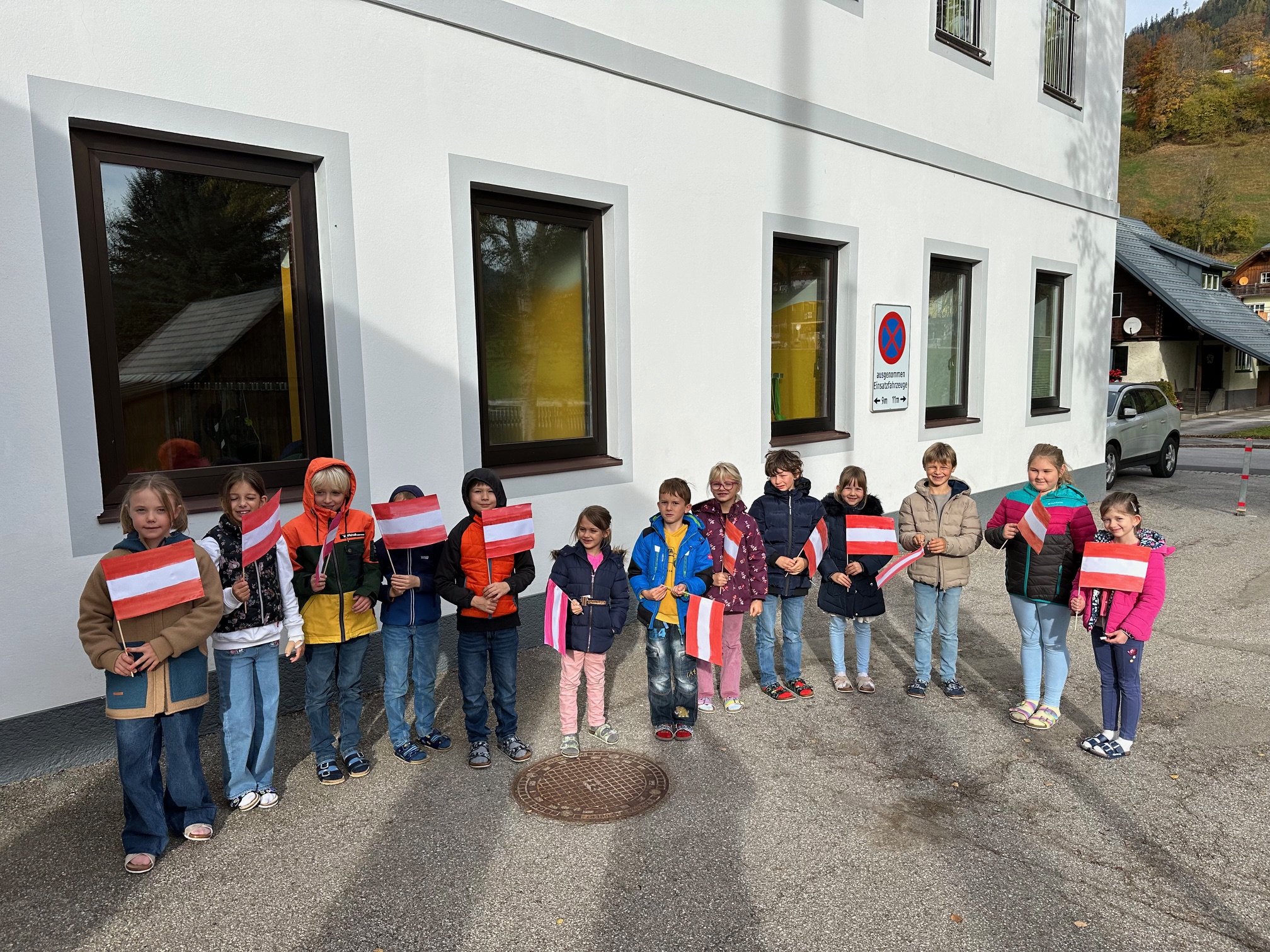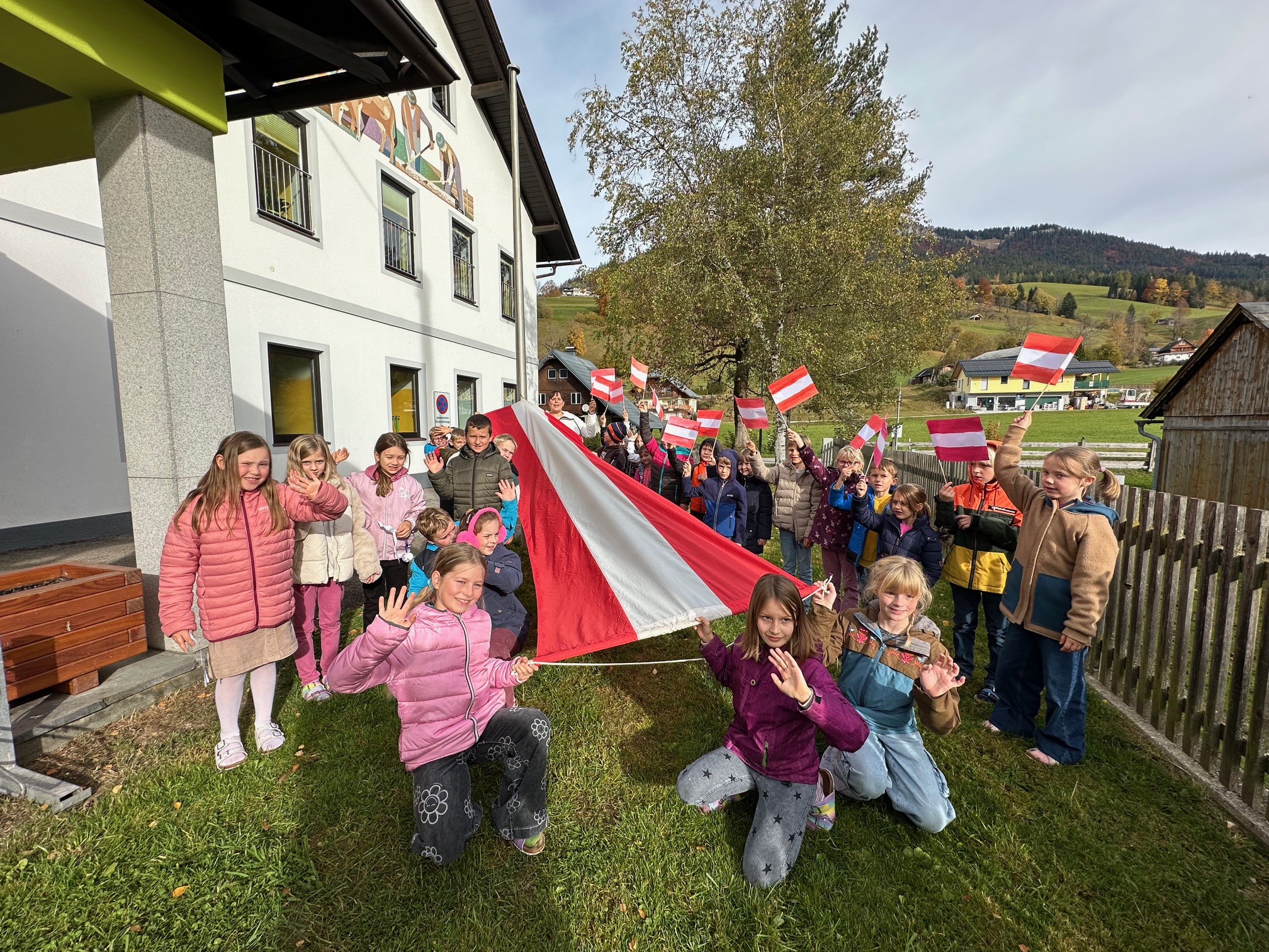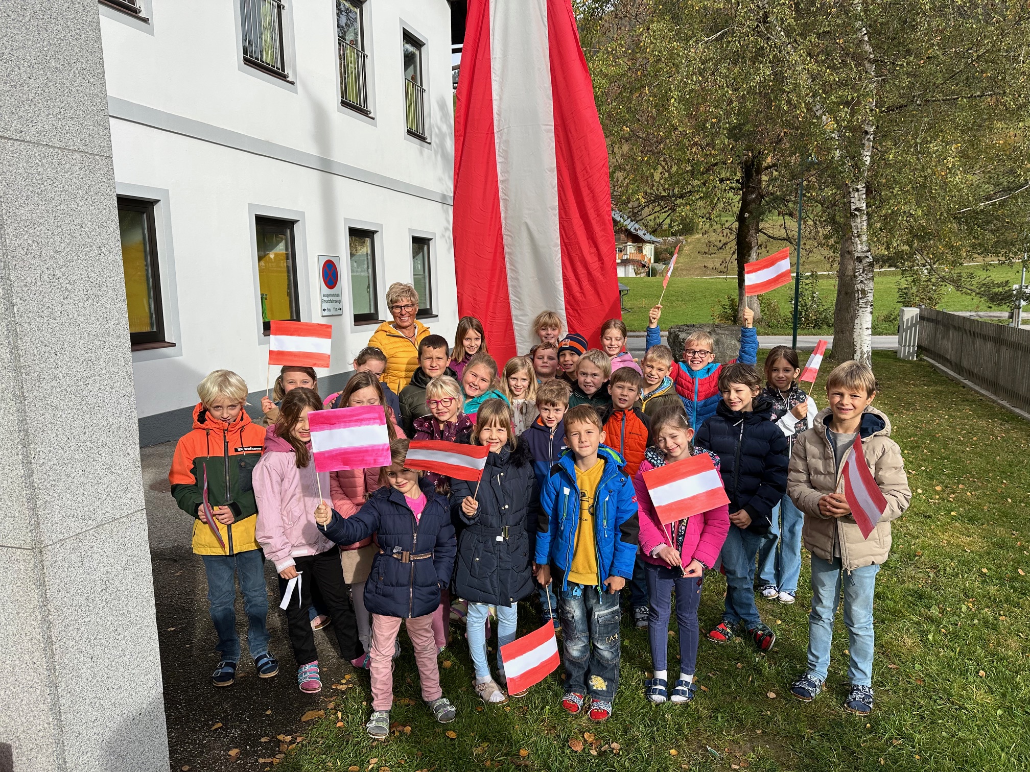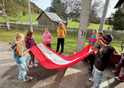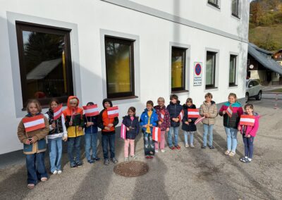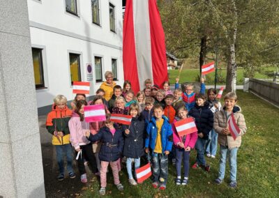 Wie jedes Jahr hissen wir anlässlich des Nationalfeiertags die österreichische Fahne und singen gemeinsam unsere Bundeshymne. Außerdem sagen die Kinder der ersten Klasse ein Gedicht auf und die Kinder der zweiten Klasse liefern uns interessantes Wissen rund um unser Heimatland mit einem Österreich-ABC.