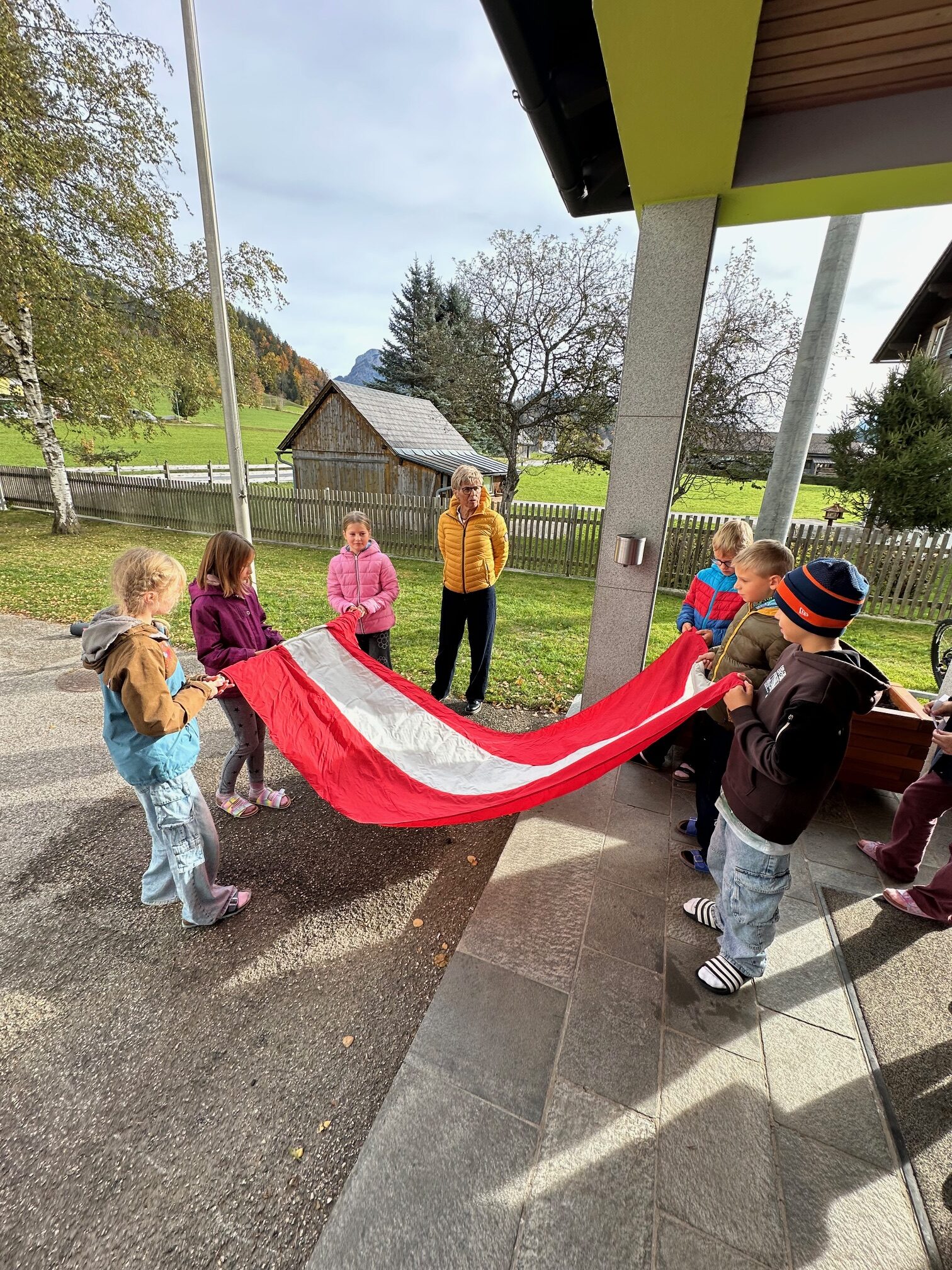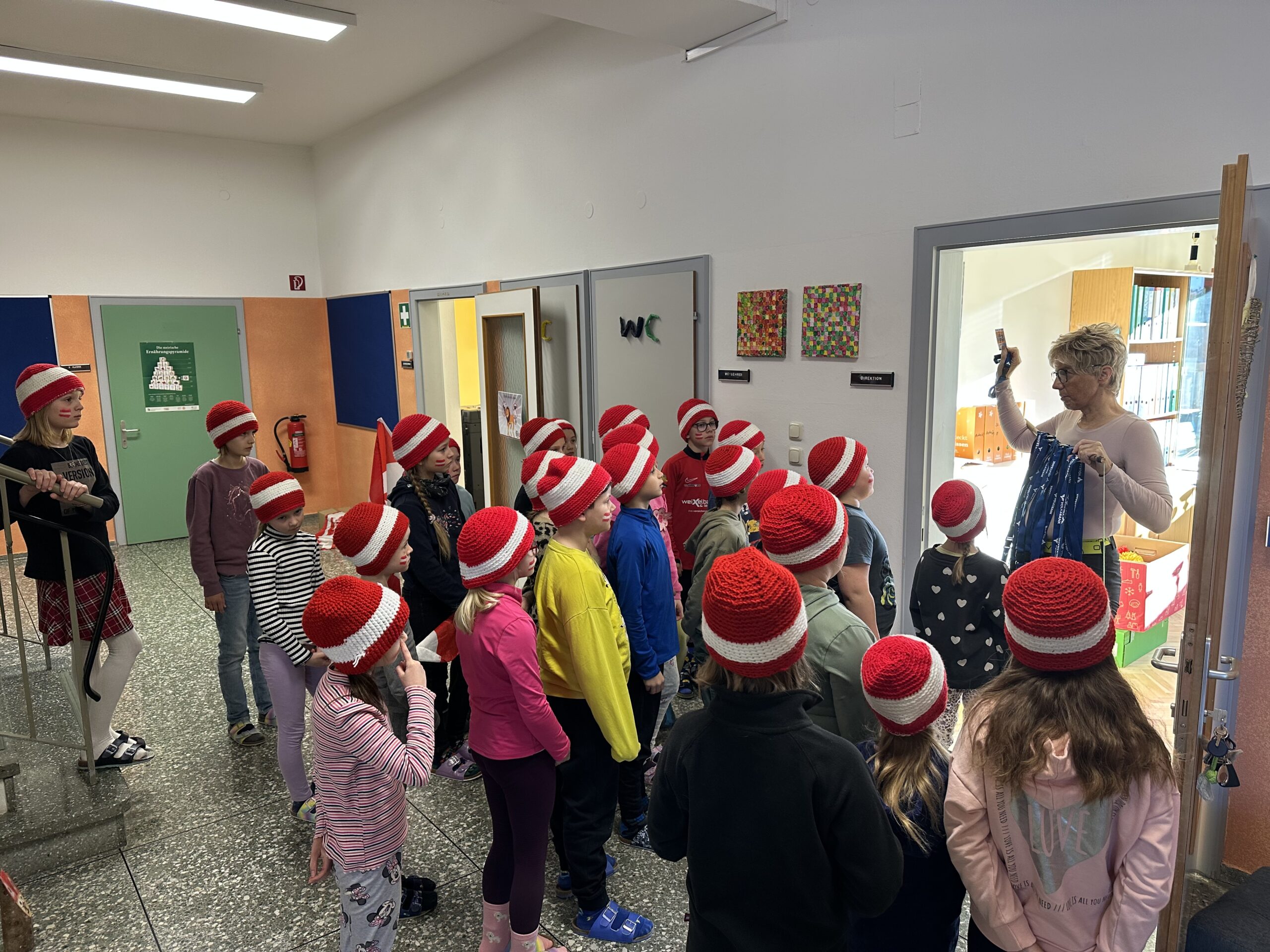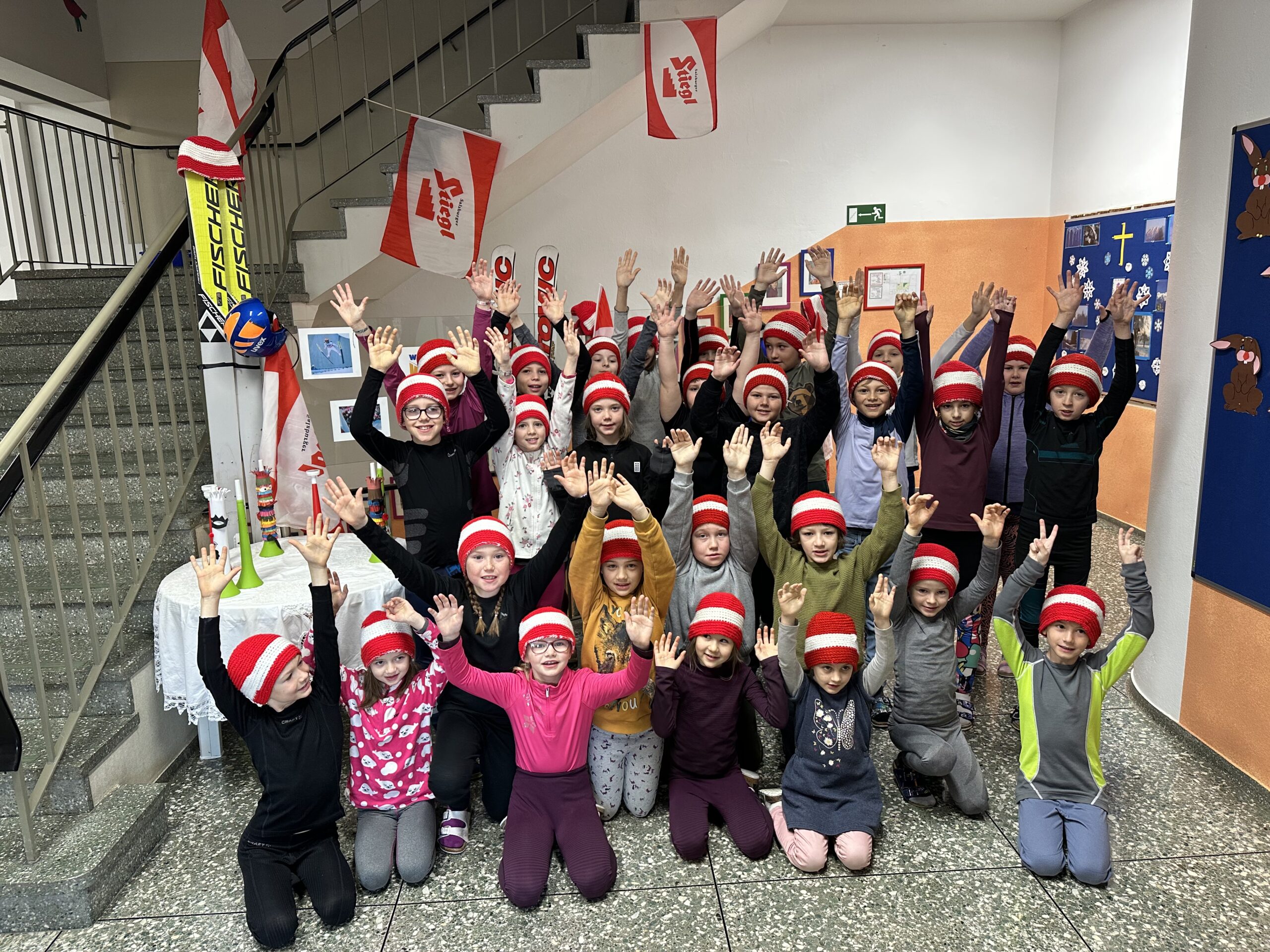 Wie jedes Jahr hissen wir anlässlich des Nationalfeiertags die österreichische Fahne und singen gemeinsam unsere Bundeshymne. Außerdem sagen die Kinder der ersten Klasse ein Gedicht auf und die Kinder der zweiten Klasse liefern uns interessantes Wissen rund um unser Heimatland mit einem Österreich-ABC.