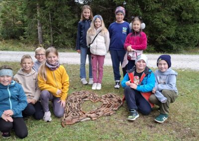 Wir starten am Parkplatz und wandern vom Groß-See zum Märchensee, wo wir ein wunderschönes Plätzchen zum Jausnen finden. Danach wandern wir querfeldein und bestauenen, wo der Bach in den Berg fließt. Um unserer Gemeinschaft ein Sinnbild zu geben, bauen wir ein „Stoamandl“ und wandern weiter zum Tauplitzsee. Danach wandern wir zum Treffpunkt, an dem uns der Bummelzug abholt. Da dieser sich verspätet, wandert ein Teil der Gruppe (die, die noch nicht zu müde sind) mit Frau Harreiter weiter zum Aussichtspunkt, um einen Blick auf den Steirersee zu erhaschen. Abschließend bringt uns der Bummelzug zurück zum Parkplatz, wo uns der Bus schon erwartet. Ein wundervoller und erfolgreicher Wandertag für uns alle!